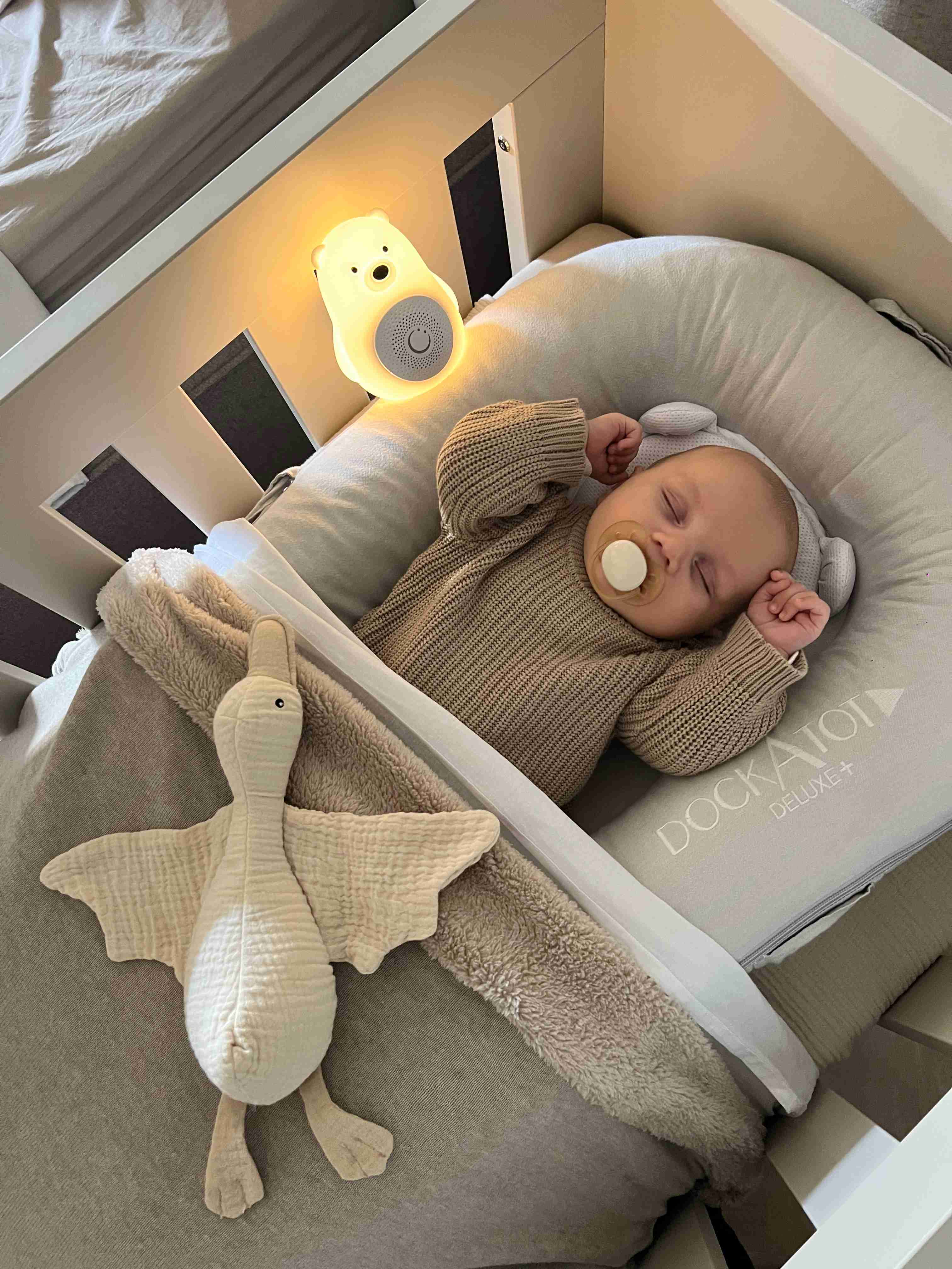 Maak kennis met Bruno, het knuffelbare slaapvriendje van jouw kindje. Bruno helpt baby’s rustig in slaap te vallen met vertrouwde geluiden zoals het kloppend hart, shussh-geluiden en de rustgevende ruis die ze herkennen uit de baarmoeder. Naast deze bewezen geluiden heeft Bruno méér te bieden: hij speelt 30 rustgevende geluiden en liedjes én beschikt over zijn eigen Nederlandse bedtime story, speciaal geschreven om jouw kleintje veilig en geborgen de nacht door te helpen.